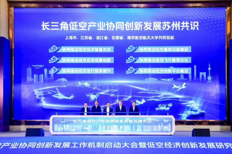 2024年11月7日,长三角低空产业协同创新发展工作机制启动大会暨低空经济创新发展研究院成立大会召开。工业和信息化部党组成员、副部长辛国斌出席会议并讲话。与会领导共同为低空经济创新发展研究院和低空产业联盟长三角分盟揭牌。会议发布了长三角低空产业协同创新发展苏州共识。